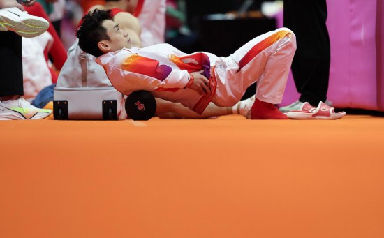 10月20日,中国选手张博恒在男子资格赛鞍马项目比赛中。新华社记者 岑云鹏 摄